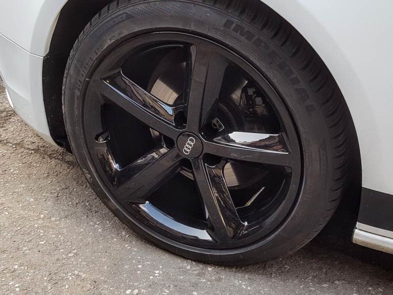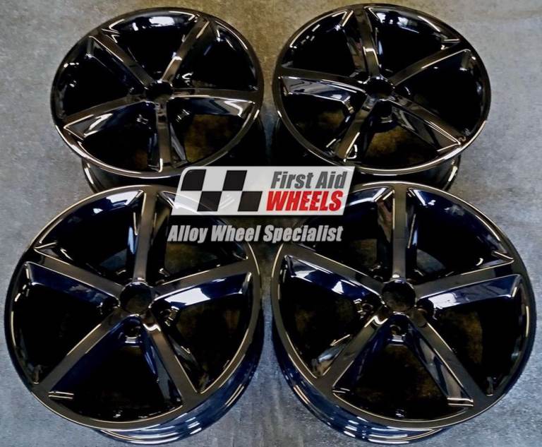 You can exchange this set like for like 4x 18'' genuine OEM (Original equipment manufacturer) Audi A5 mk1 8T, 5 spoke alloy wheels. They will be fully factory refurbished to gloss black finish with powder coating (very strong durable finish baked in the oven).