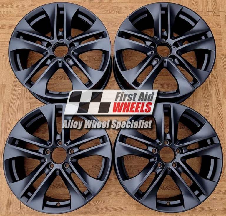 This is to exchange this set like for like 4x 17'' genuine OEM (Original equipment manufacturer) Mercedes E Class Estate S212 Saloon W212, 5 twin spoke alloy wheels. They will be fully factory refurbished to satin black finish with powder coating (very strong durable finish baked in the oven).