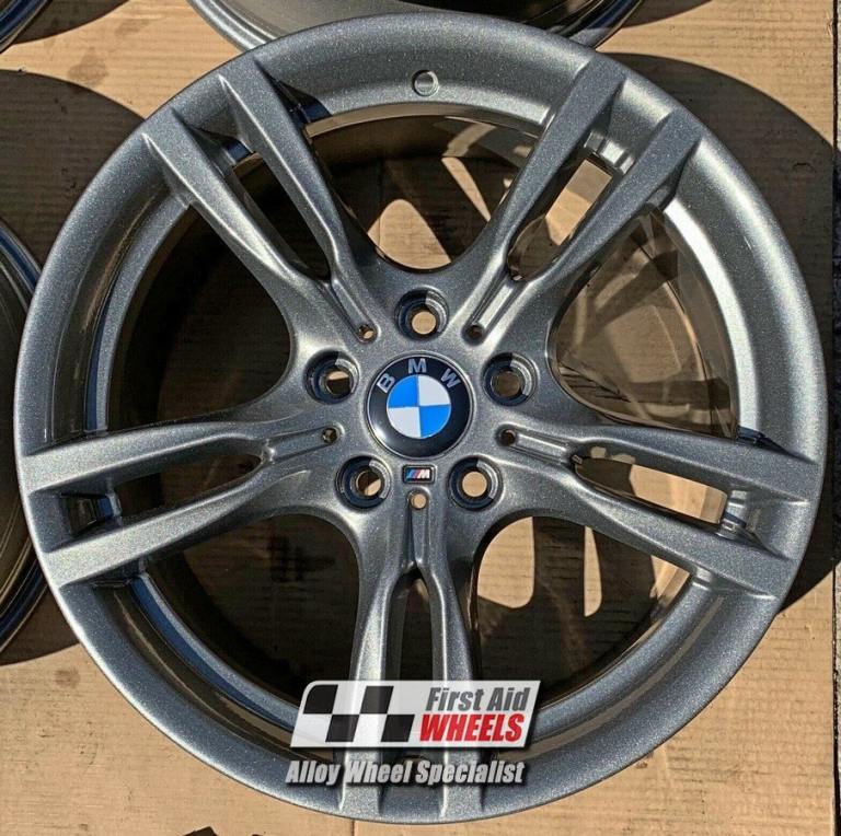 You can exchange this set like for like 4x 18'' genuine OEM (Original equipment manufacturer) BMW 3 Series F30 F31 Gran F34, 4 Series F32 F33 Gran F36, Style 400M M-Sport alloy wheels. They will be fully factory refurbished to satin light anthracite grey finish with powder coating (very strong durable finish baked in the oven).