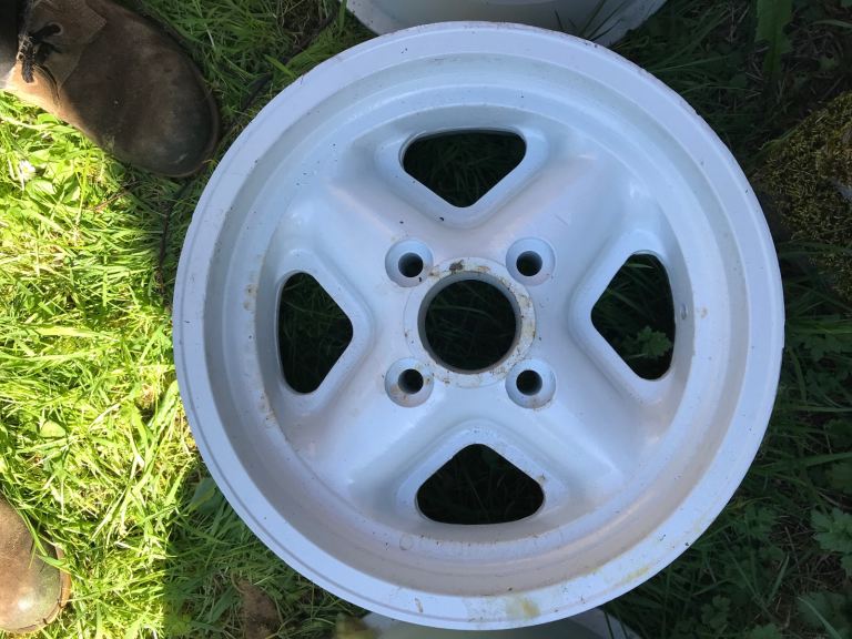 Set of 4 white stove enamel Revolution classic alloy wheels. Please contact me for further information. cheers Joe