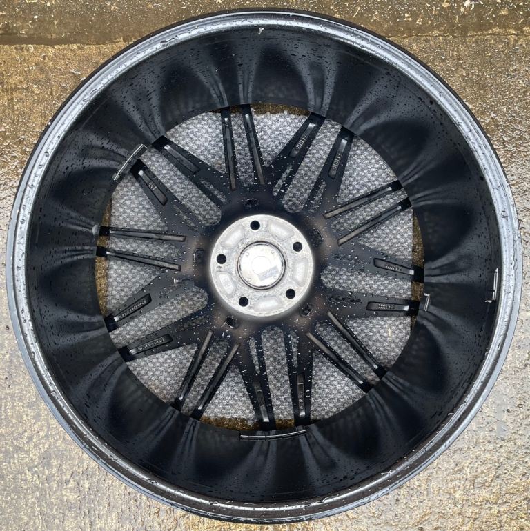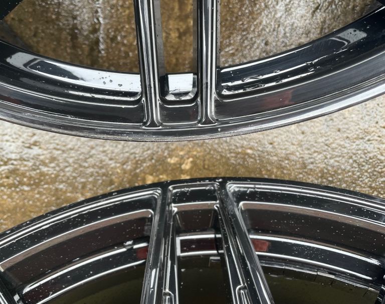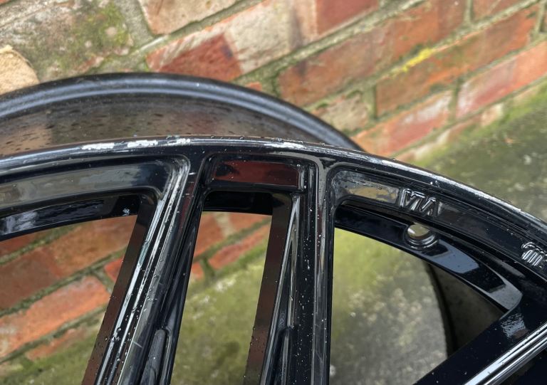 The wheels are in good condition and are finished in gloss black. There are however several light marks to the edge of the rims. Please see images in the item listing and let us know if you would like additional images.