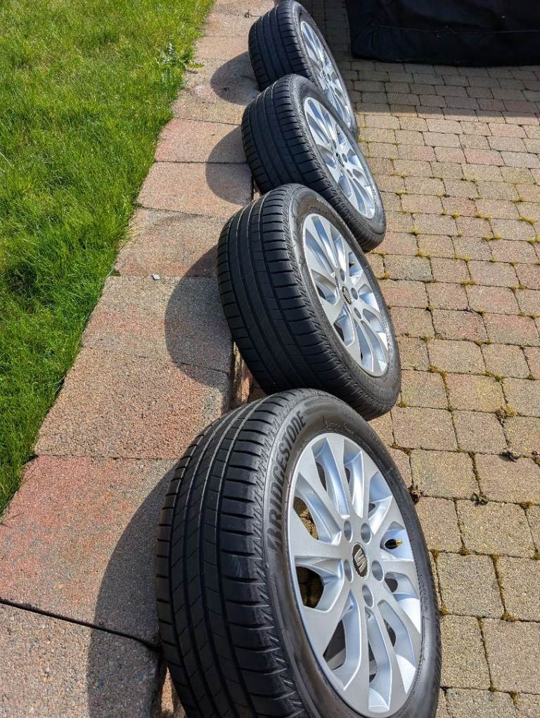 Genuine set of Seat Leon MK3 alloy wheels in perfect condition, totally mark free and with nearly new Bridgestone Tyres 205/55/16