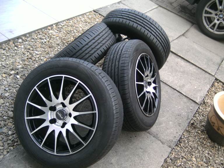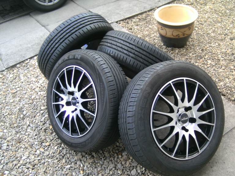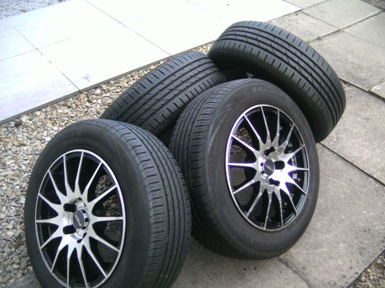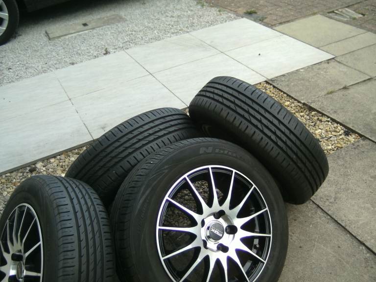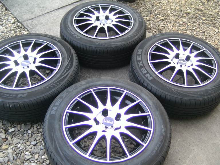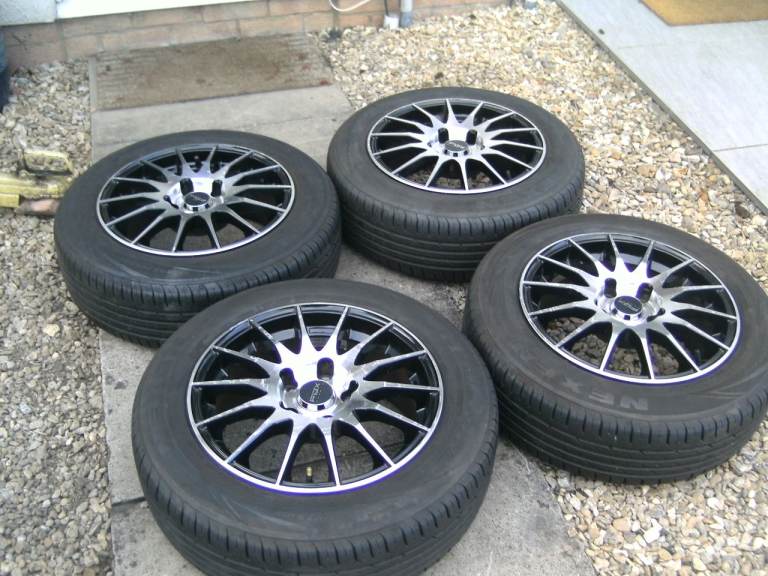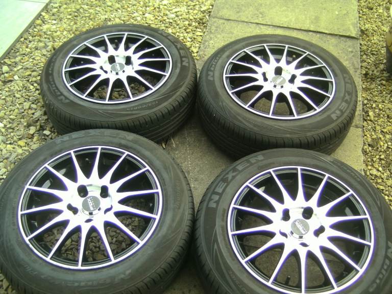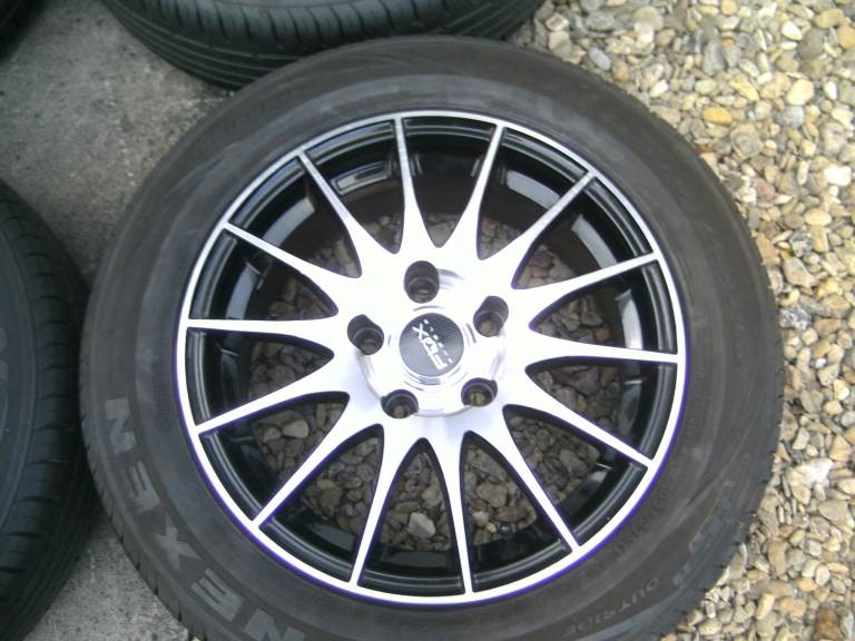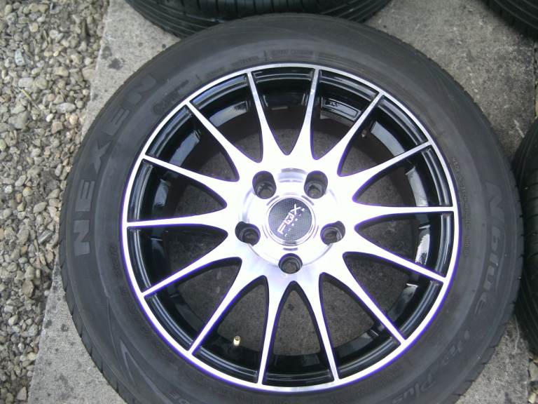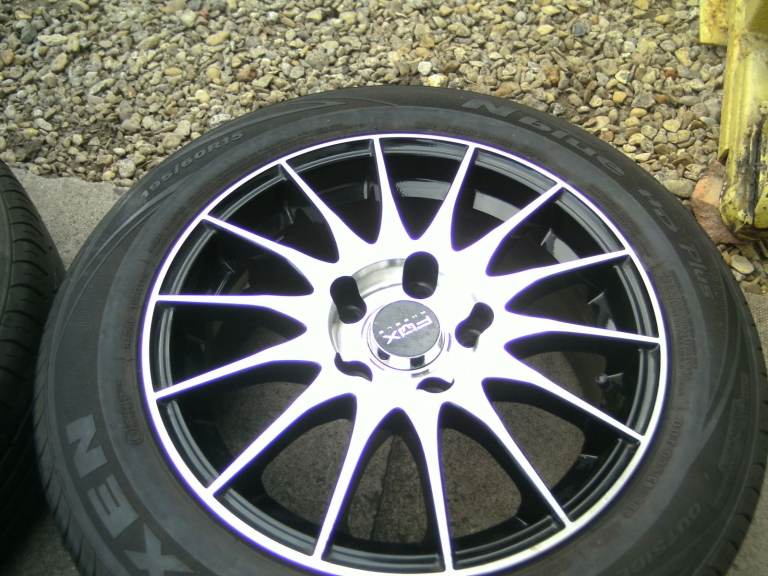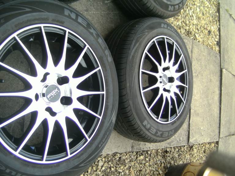 SET 4 , VERY VERY NICE , UNDAMAGED , FOX , AFTER MARKET ALLOYS , COST £650 WITH TYRES , 15 INCH , 5 STUD , 5 X 110 PCD , 15 X 6.5J , CB 73.1 , ET35 , ITALIAN DESIGN , NO DAMAGE , NO KERBING , NO CRACKS , NO WELDS , NO BUCKLES , ONLY DID A FEW HUNDRED MILES , SOLD THE CAR , NOTHING ELSE TO PUT THEM ON , LITT;LE BIT LACQUER LIFTING , OTHERWISE SUPERB , C/W SPIGOT RINGS TO REDUCE CENTRE BORE , COMPLETE WITH NEW / AS NEW WHEEL CENTRES , MORE TO THE POINT COMPLETE WITH 4 , NEW / AS NEW , MATCHING , NEXEN N BLUE HD + TYRES , ALL AS NEW , ALL 8MM NEW TREAD , TYRES ALONE WORTH £240 FITTED , SO A STUNNING SET 15 s , WITH CENTRES , WITH SPIGOT RINGS , WITH 4 AS BRAND NEW 195/60/15 TYRES , ALL AS NEW 8MM TREAD , ABSOLUTE GIFT , JUST £95 ,,,THE SET , TRANSFORM YOUR CAR , OR PUT 4 NEW TYRES ON IT ,, CHURCHDOWN , GLOUCESTER , GL3 1NS ,,,,