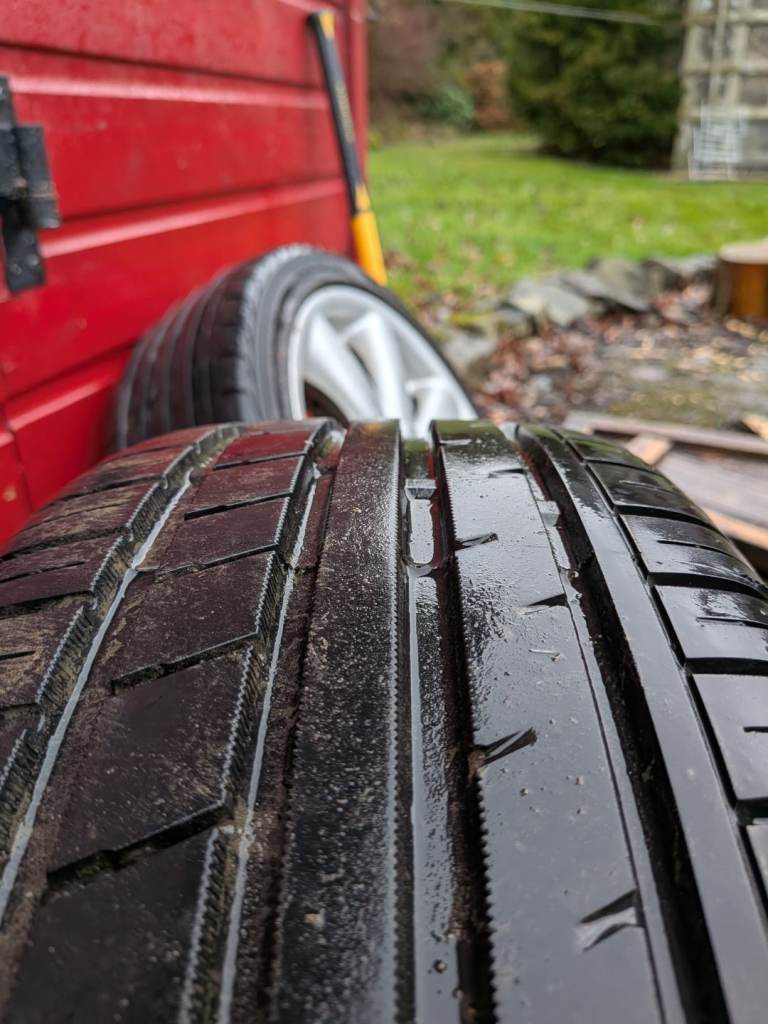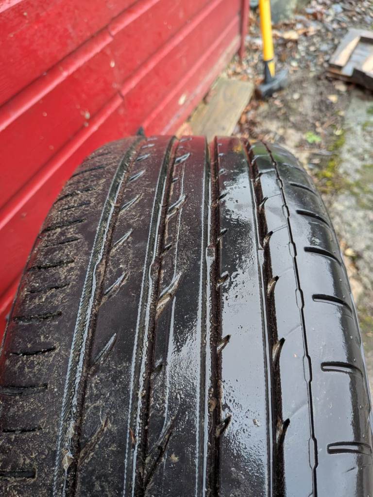 All straight, few kerb marks, but nothing major. All four tyres have decent and even tread, 5 to 6 mm.