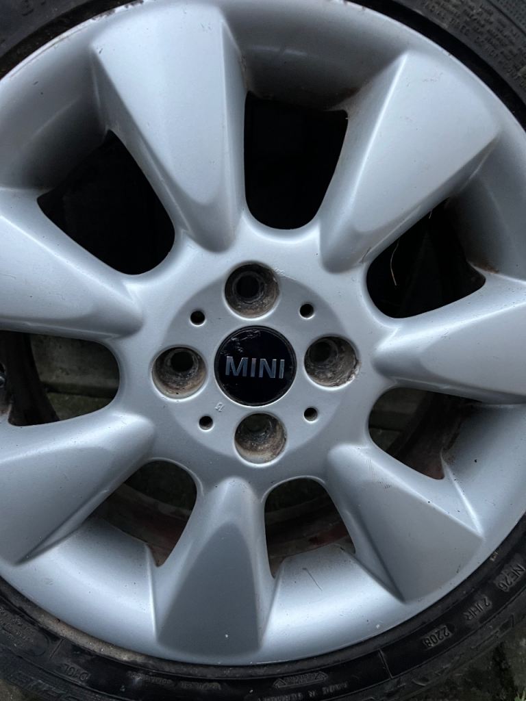 I have a set of 4 premium brand tyres 195/55 R16 87V for a Mini Cooper, with 4 genuine Mini 7-spoke alloys. I bought these for my sister but she has since sold her Mini. She never used them on her car and the previous owner did very low mileage on them.