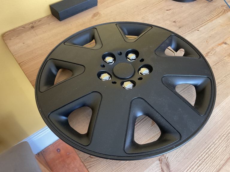 Posting for 10+ monthsSet of 4 unused Black 15 inch diameter Wheel Trims/ Hub caps.