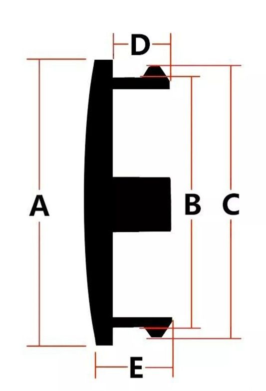 All sizes as near as possible to < 1 >mm. A: 54, B:48, C:52, D:8, E:16 mm