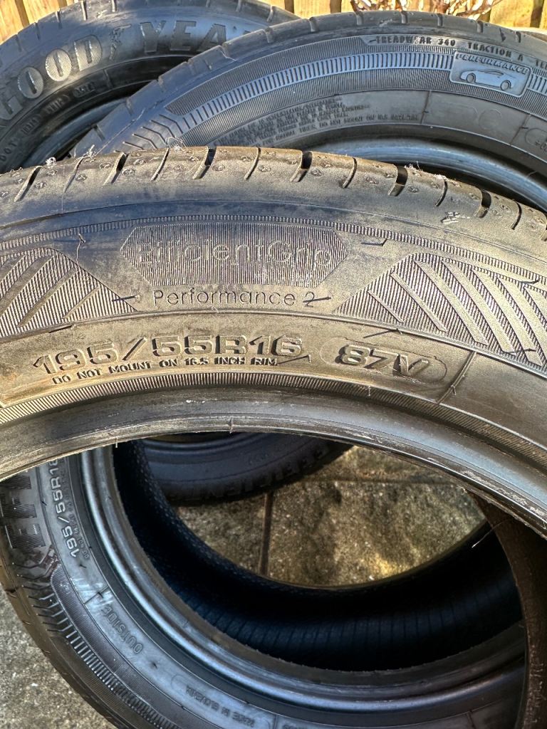 Posting for 6+ yearsSet of four Goodyear Efficient Grip 195/55R16 tyres.