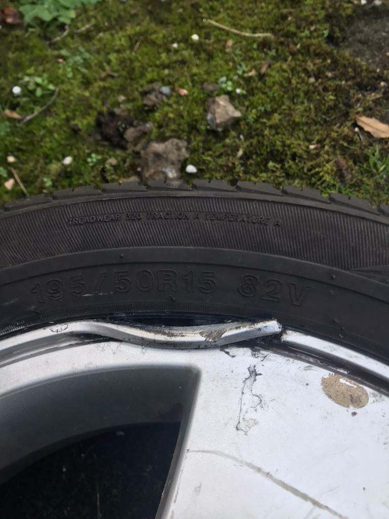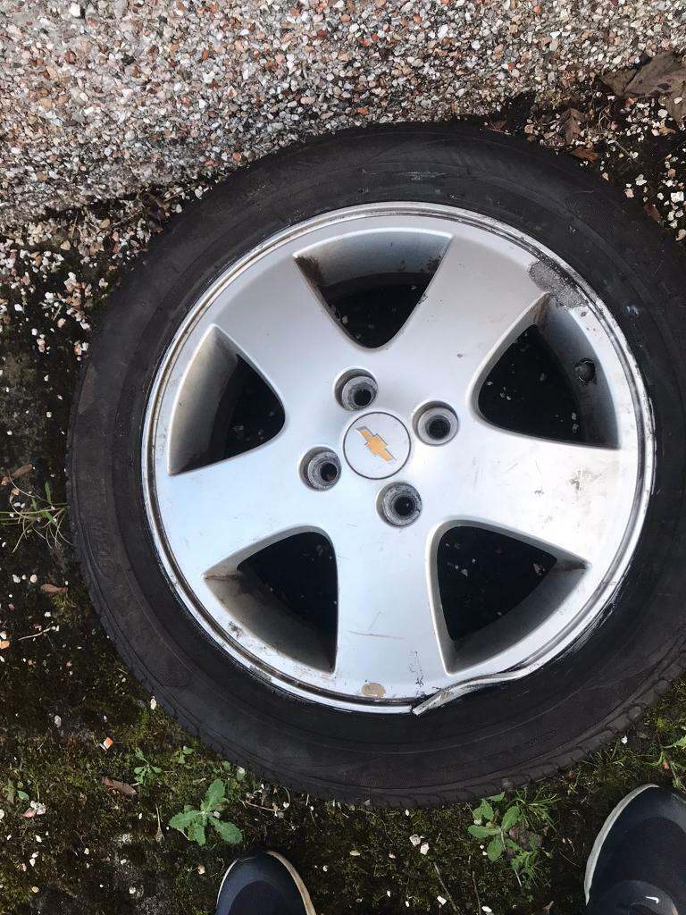 Spare alloy Chevrolet T spark As it’s damaged on one side (check the pictures) It can used as a spare It holds the air no problem as it is but needs repair if you want The size of the tyre 195/50/15 excellent condition free delivery available within