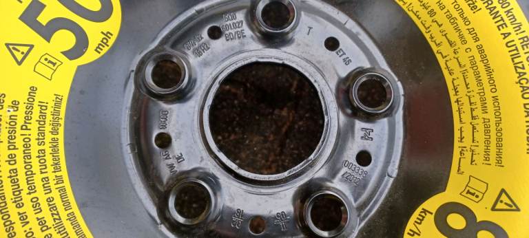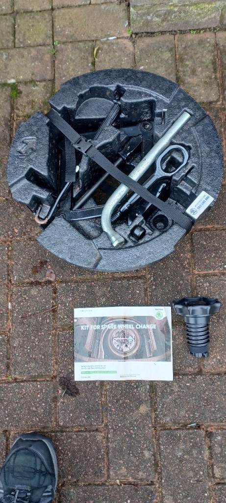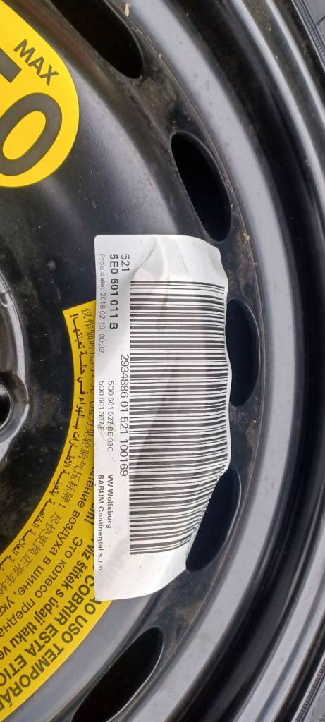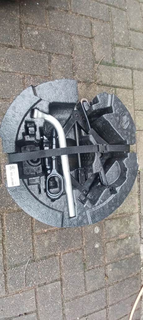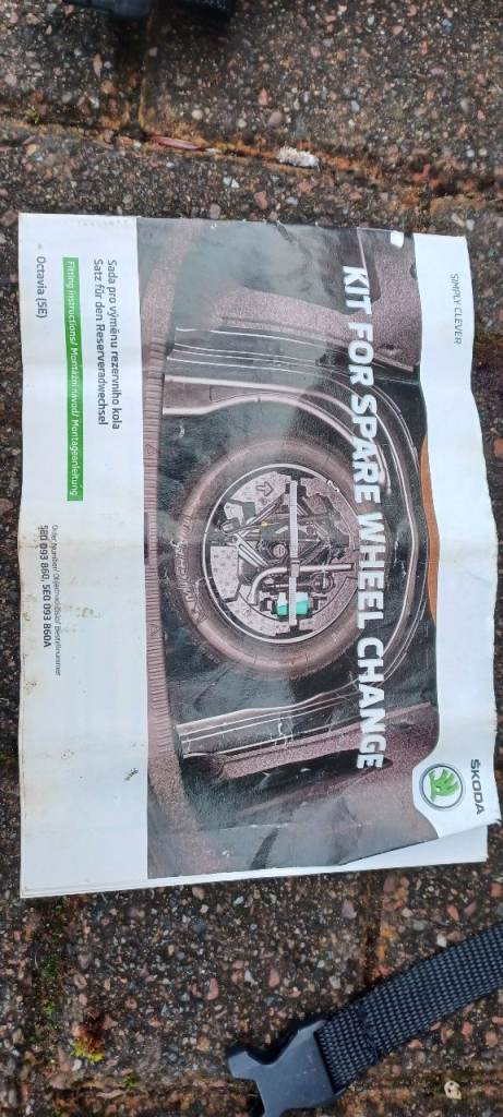 Unused full size spare wheel and genuine Skoda wheel change kit that fits inside the wheel. Includes the retainer and strap to secure it all to the spare wheel well. Parts included are as pictured. The tool tray also has space for storing the factory detachable swan neck towball. Wheel/tyre are unused. Tray has a bit of the polystyrene broken off where the threaded end of the towing eye fits. I had this for a 2017 Octavia Scout Mk3 with 215 50 17's. The difference in overall diameter is only 5mm. Fits in an empty wheel well under standard height estate boot floor. May also fit other VW group 5 stud ET 46.