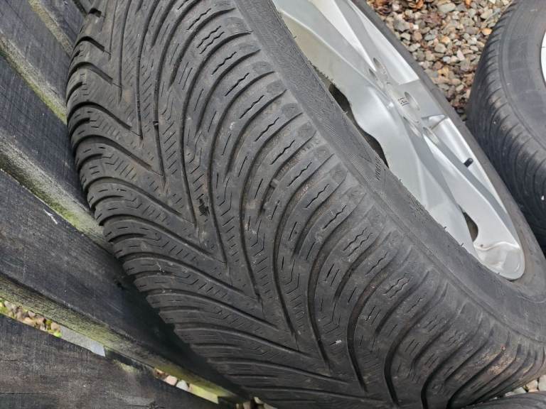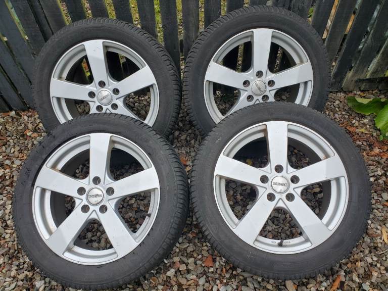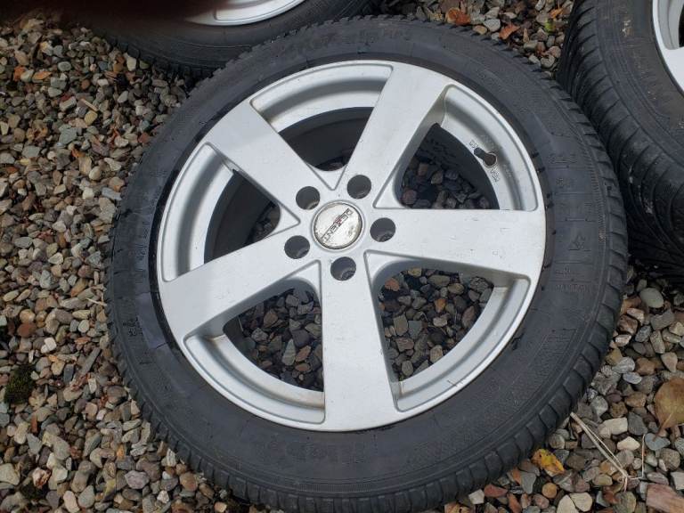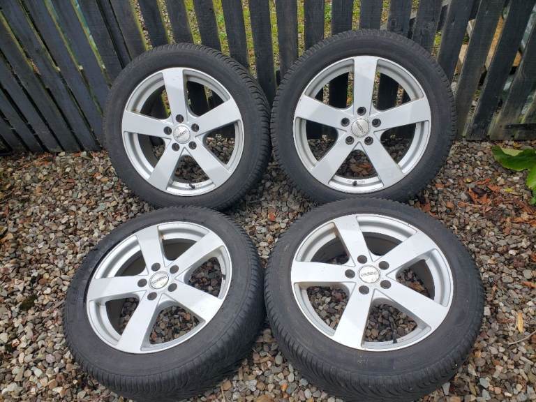 Set of four alloy wheels and Krisalp HP3 winter tyres all in good condition. Tyre size 225/50 R17 with 5mm tread remaining. May fit other VAG cars but buyer to check.