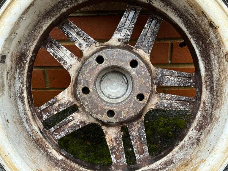 All wheels are straight with no cracks, buckles or welds. They were painted black at some point and this is flaking off, revealing the original silver colour underneath. One of the centre caps has a small crack on the edge but doesn't affect use.