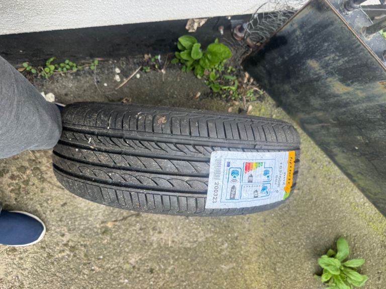 This is a spare tire from a car I sold . It’s brand new still got labels on it . It cost £399 with the rim and balancing . ( may need a rebalance. ) not stolen or wierd . Just a tire. That is not needed . 185/60R15 as seen on the label .
