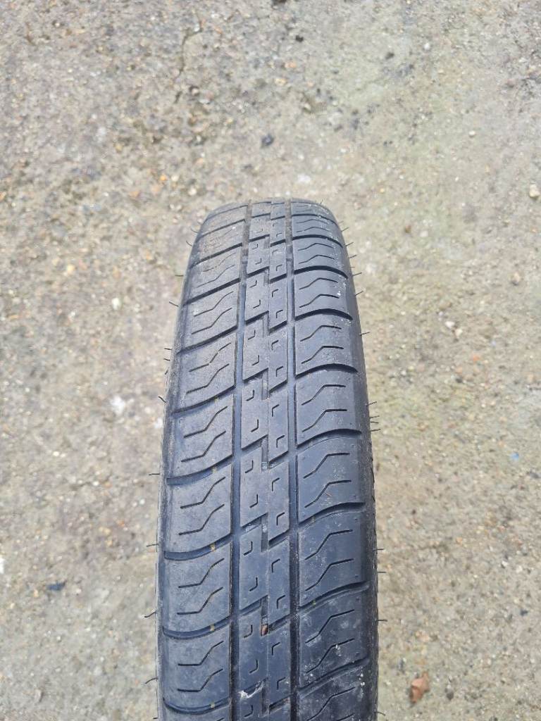 Spare tyre to be sold. Use in case of an emergency. Dimensions are T125/70/R16.