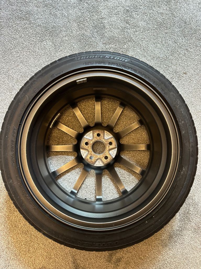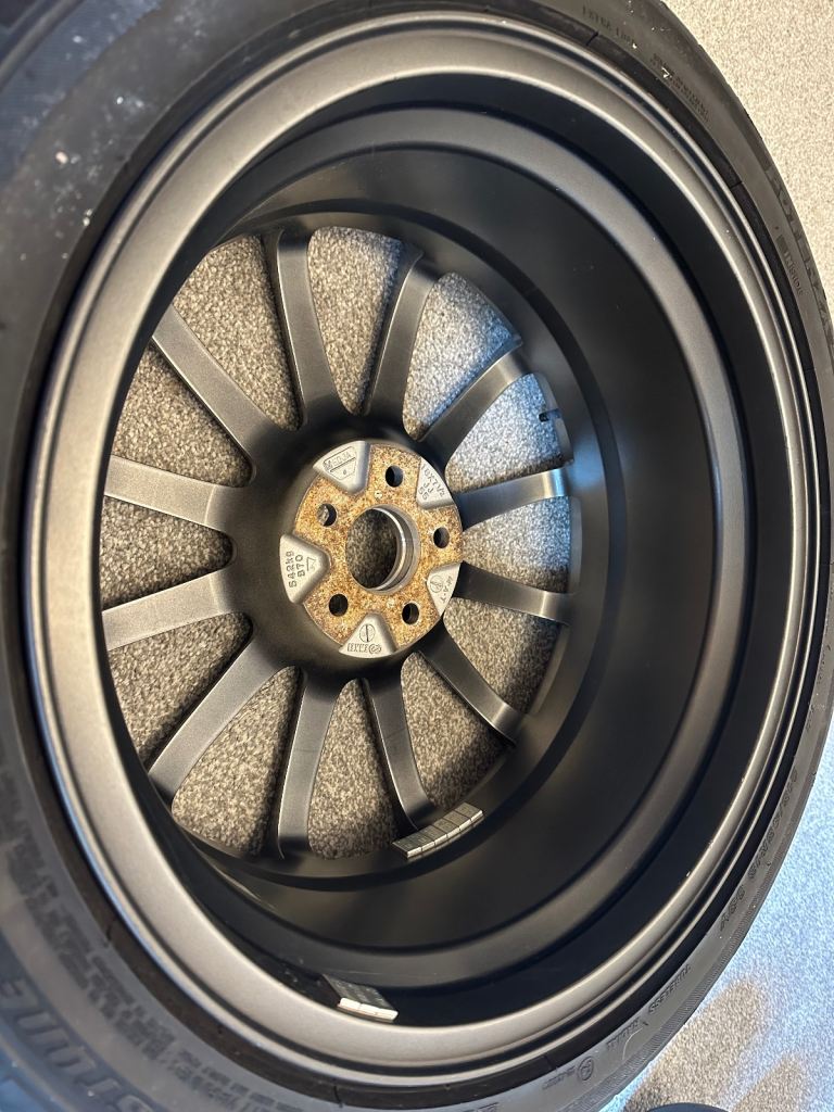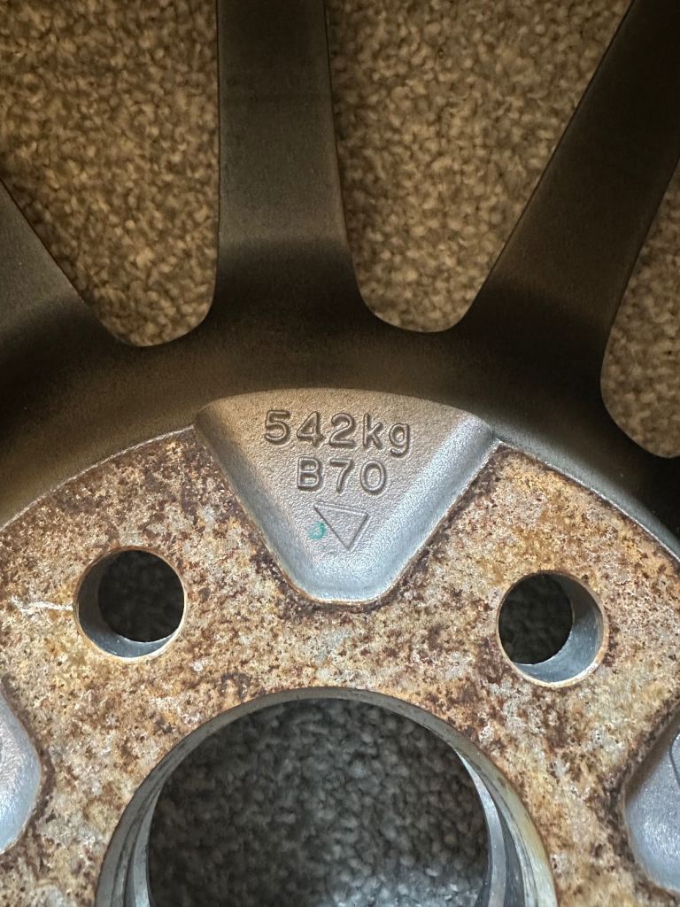 Pretty rare set of wheels. There were a couple of iterations of these wheels so please make sure they match with your existing set. I believe the earlier set had flatter spokes.