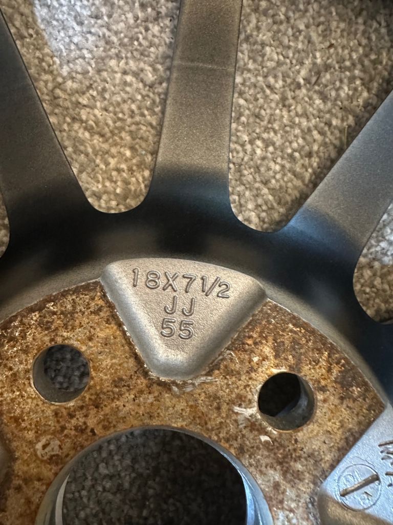 The specs are 5x100, 18 inch, 7 1/2 JJ. The stamps are shown in the pictures.