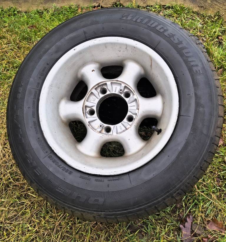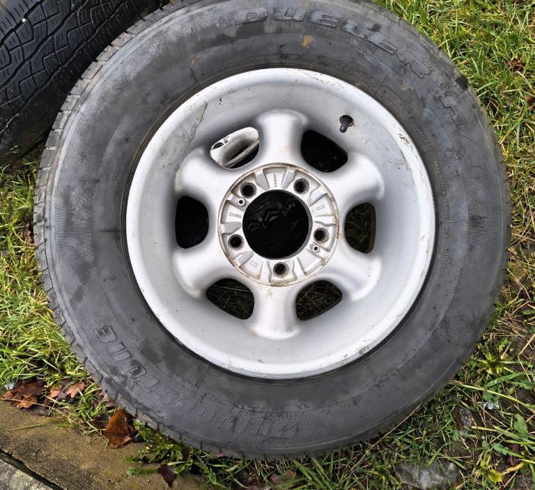 4--Suzuki Vitara Fatboy alloys wheels came off mk1 tyers not the best come with center caps will fit others ,size 225,75,R15 pick up will need be from south Yorkshire or courier available extra cost any questions drop me message please no time wasters thanks for looking
