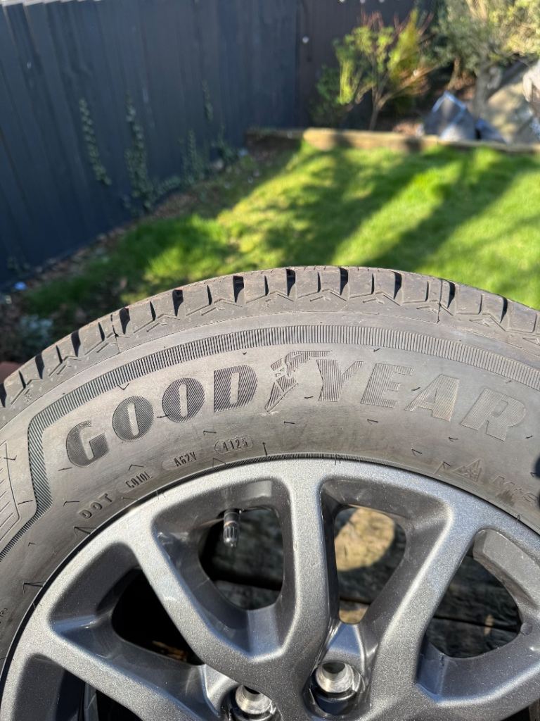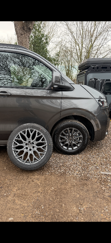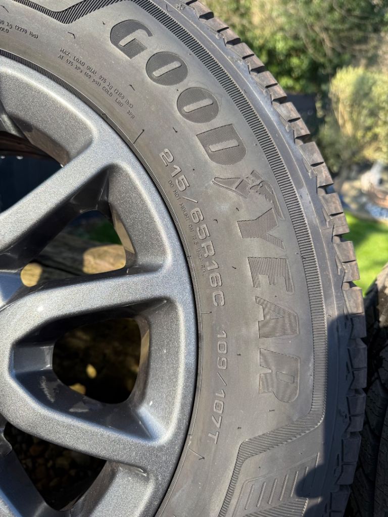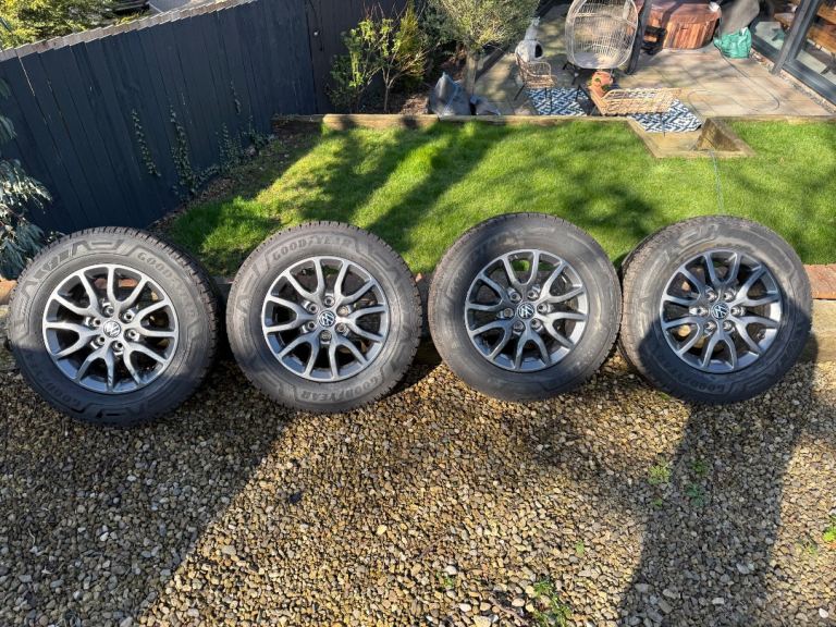 New Alloy wheels with top of the range Good Year vector 4 season rubber on them. Took off brand new T7 van van only delivery miles on them. Im converting van into a camper so have upgraded to 20inch valour’s. The rubber alone is £500 to buy.