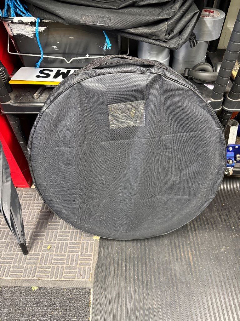 Unused 19” Tesla space saver wheel in cover with jack, spanner and tools.