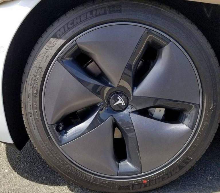 The Tesla logo centre cap or Areo cover is not included, but can be ordered for extra.