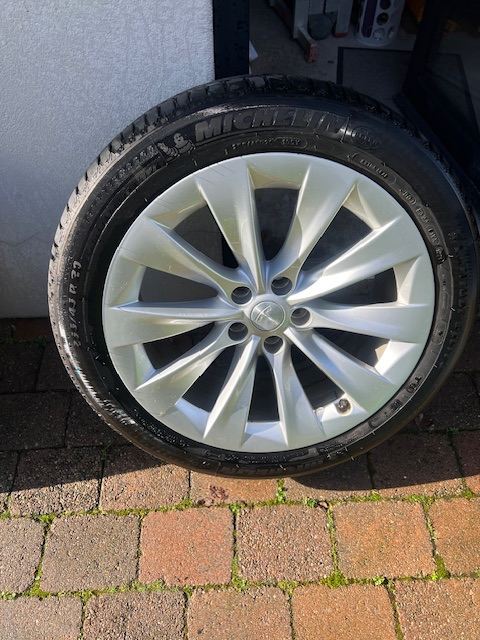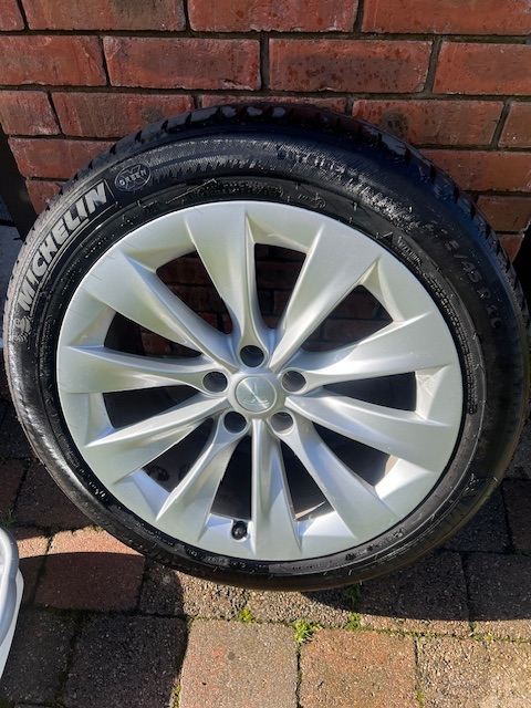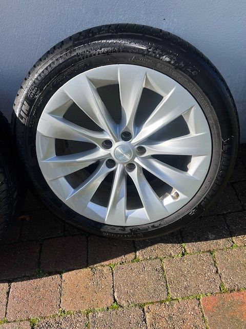 I have 4 wheels and rims that came of my Model S. I bought the car 2 years ago and upgraded the rims and tyres after 6 months. I was going to re-fit them when selling but the new buyer didn't want them. There was about 2,800 miles on the clock when wheels were changed. There are a few quite small very minor, insignificant marks on them - wheels were never kerbed. The tyres/wheels are 2 x 275/45/R20 Michelin & 2 x 255/45/R20 Michelin