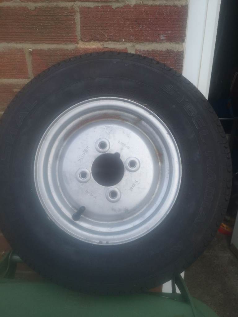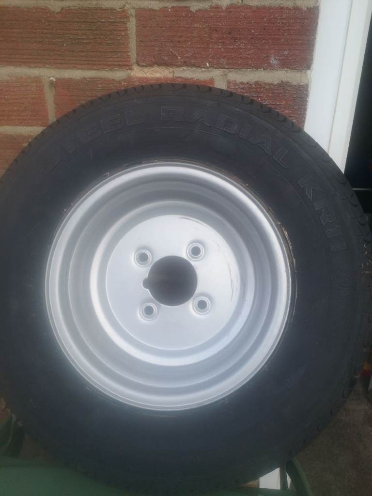 This is a brand new trailer whieel 10inch rim and tyre it has a brand new unused marshal tyre 145-80 - 10 rim is new has a tiny bit of surface rust as shown in picture just off standing still solid though