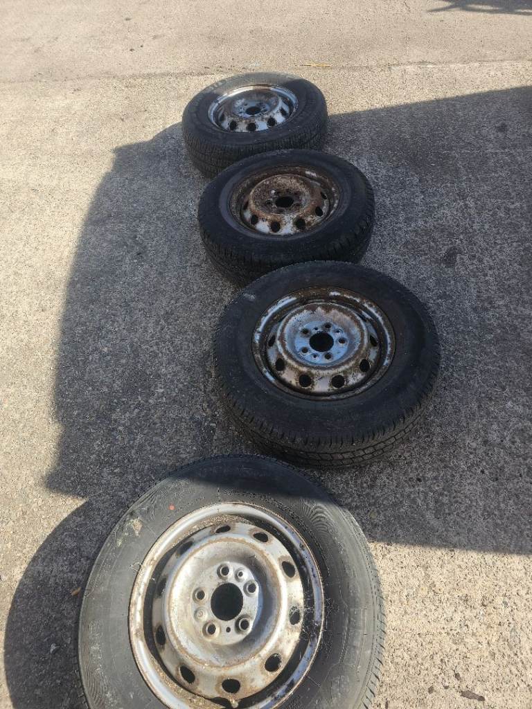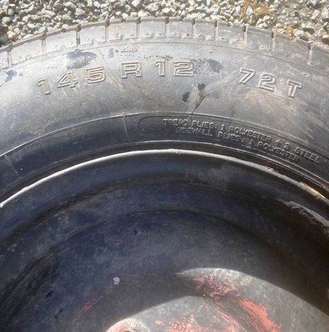 Trailer wheels x2. Size 145 R12. Zero offset on rim with a PCD of 100mm. The two tyres are as new. Price the pair. Removed from a mobile welding generator trailer.