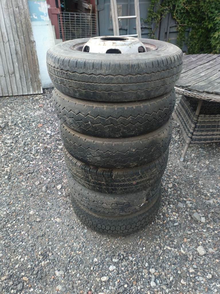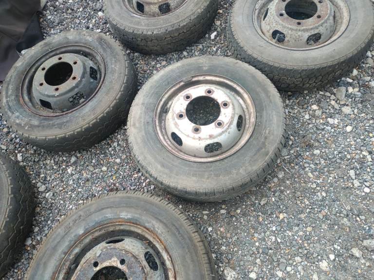 Wheels and tyres for mk5 transit smiley. Rims are fair condition could do with a spruce up. Tyres are good for spares. Price is for the lot. Viewing welcome in Gillingham Kent.