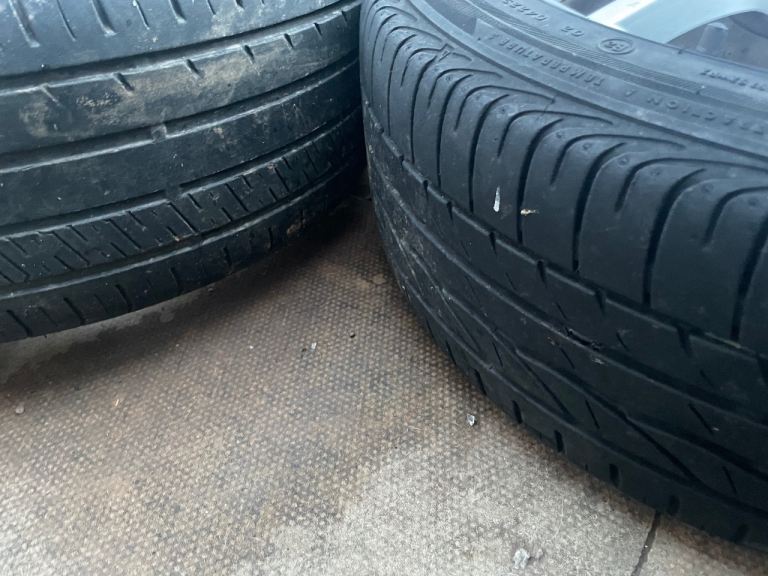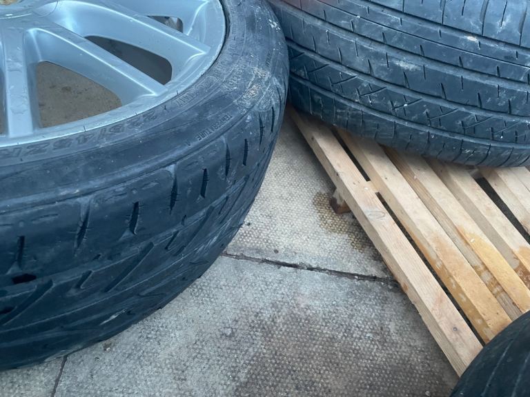 The rims are slightly marked in places , 3 tyres are excellent 1 tyre barely legal . Size 225 45R17