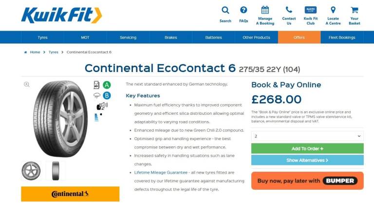 Kwik Fit new price £268.00
