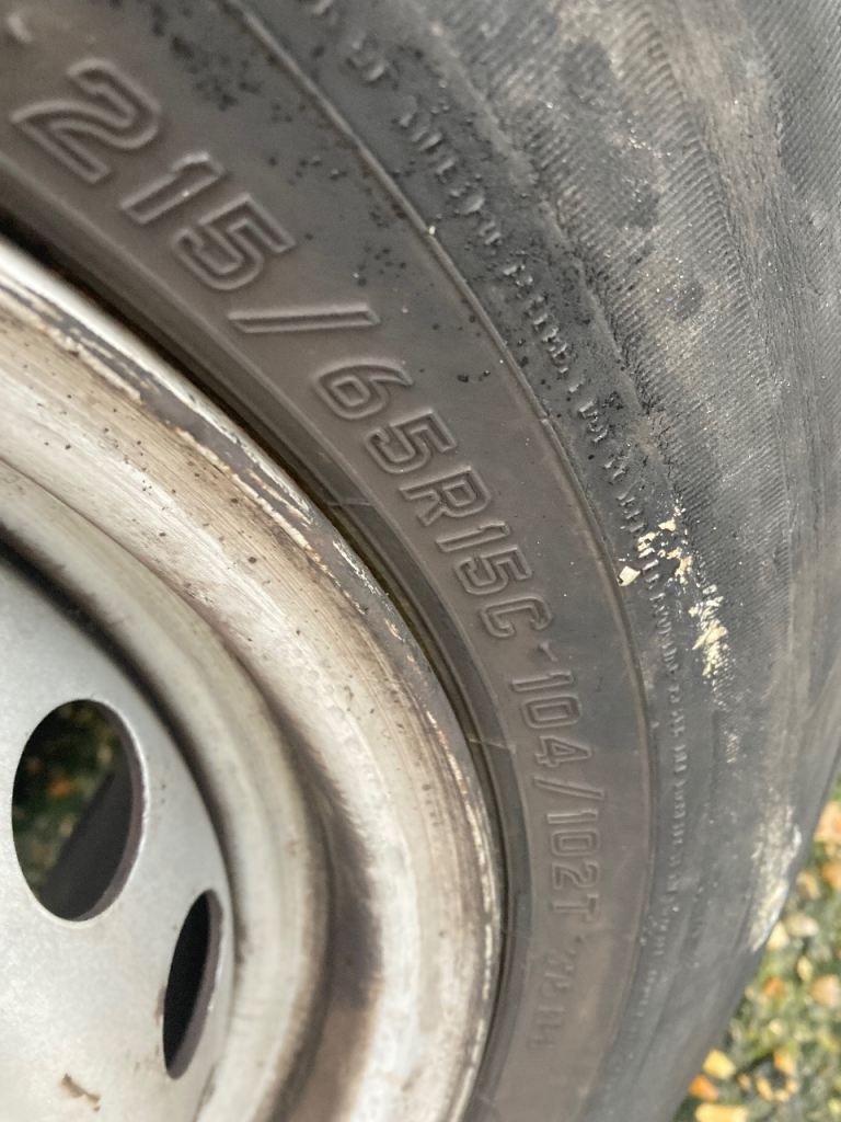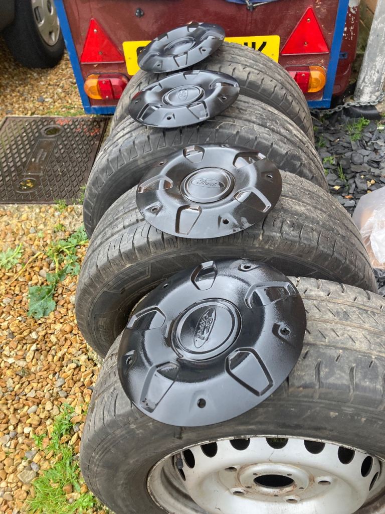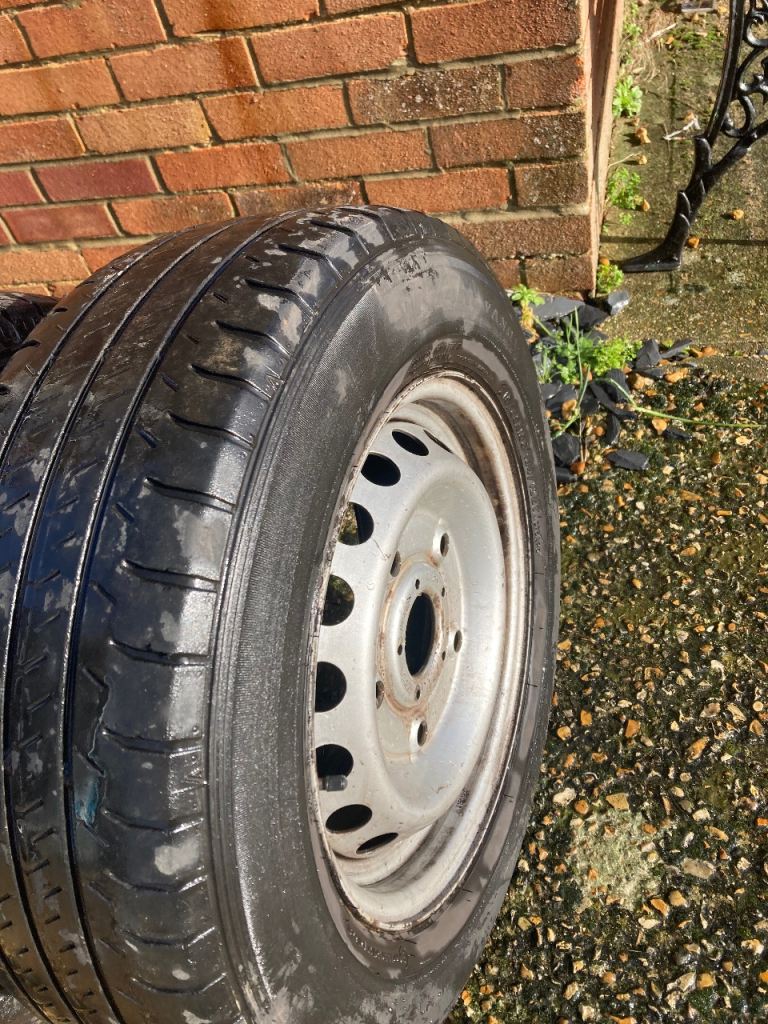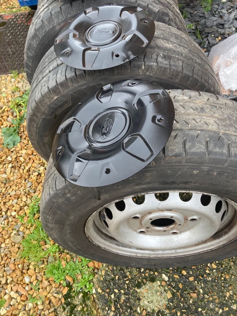 Hi selling 4 wheels good plenty of meat on wheels about 6mm to 7 mm comes with nuts come off ford transit 215/65r/15c