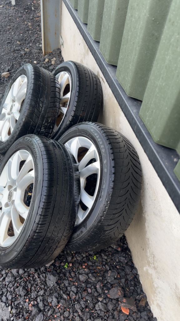 Vauxhall Corsa alloy wheels 16inch 3 tyres are legal one could do with being changed