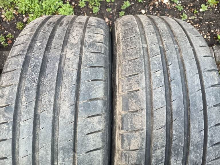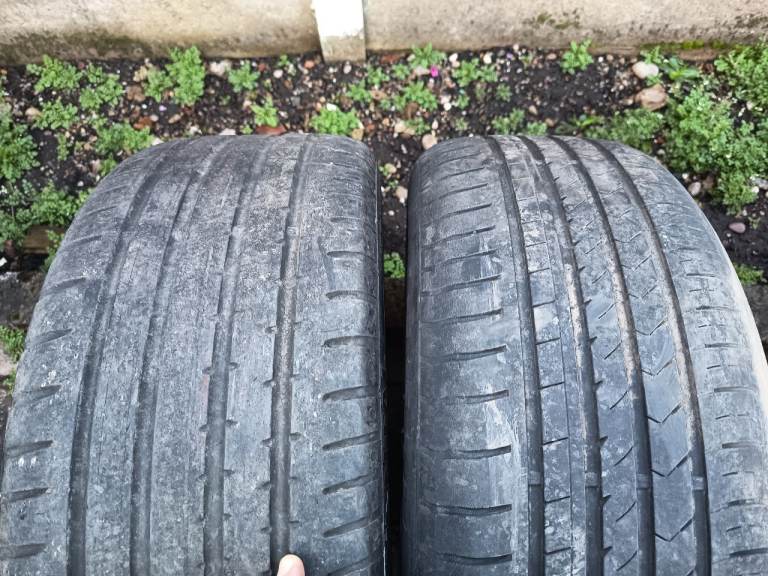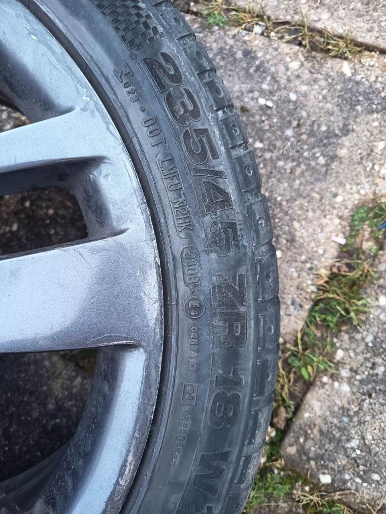 FOUR GOOD TYRES, 235/45/18 IN SIZE, ALL TYRES HAVE AROUND MM OF TREAD. ONE HAS A SLIGHT WORN EDGE.