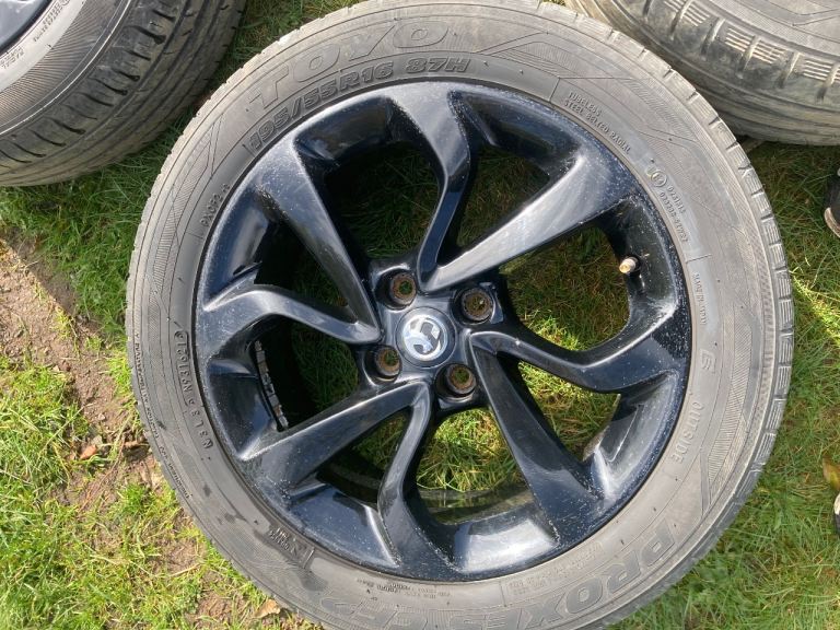 Up for sale are this set of 16” alloy wheels, there are 4x100 fitment with a 56.6 centre bore, I also include a set of sprigot to reduce the centre bore to 56.1, so there will fit perfectly on Japanese 4 studs cars, currently fitted on my Honda jazz and there are looking amazing, the offset is et40. The four tyres have a lot of tread left, two toyo and two budget next to new, the size of the tyres are 195/55/16, the wheels are all street without damage, will fit a variety of cars including of course corsas with are originally from. Any questions please ask, no offers please. See less