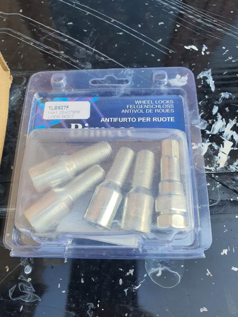 Full set of wheel nuts & new packet of lockers .