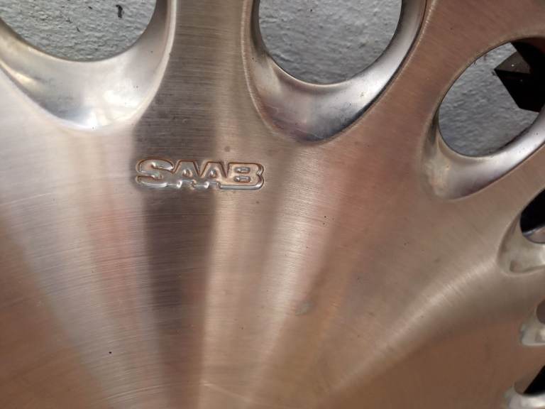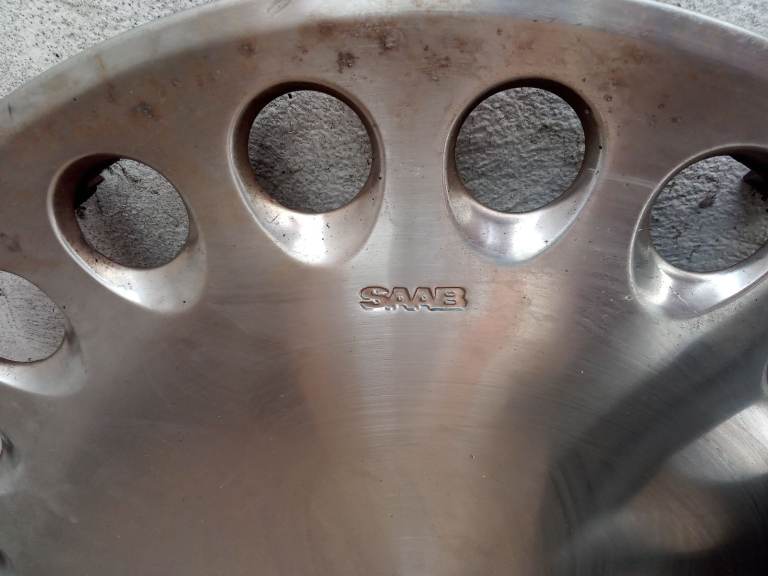 3 X Saab 9000/900 Aluminum Wheel Trim Hubcap 15 Inches. Aluminium.(some with air valve stickers atached rearside)