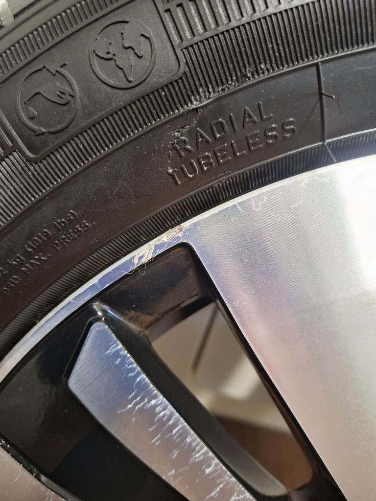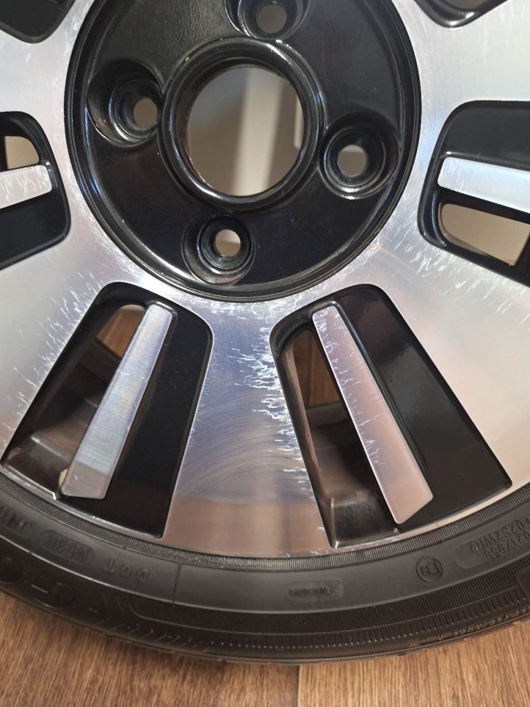 Vw blade alloy wheel and very good tyre. lacquer peel and very small kerb damage but no buckles cracks or welds.