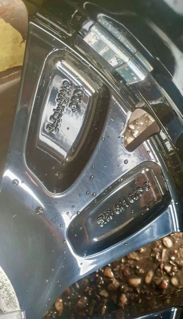 Golf MK8 wheels came off of a 2022 MK8 taken off due to upgraded wheels these wheels have never been curbed they have a gloss black finish with no flaw or peal.