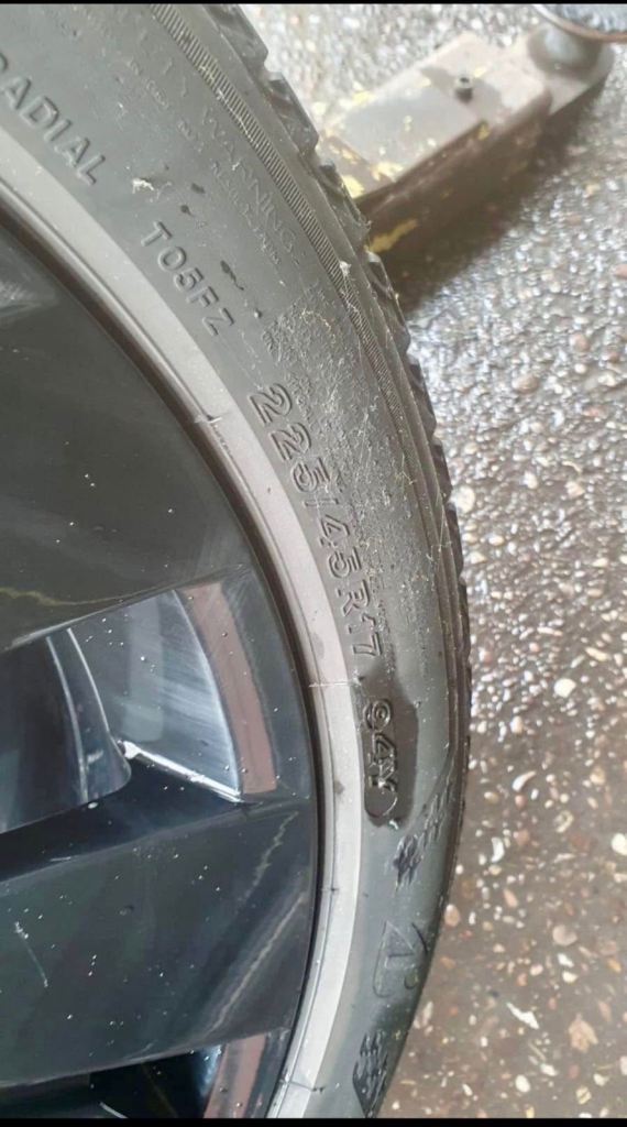 None of the wheels are damaged or have ever been damaged none of the wheels are buckled and each wheel comes with good grip branded part worn tyres that weren't even driven on 225/45/17 branded tyres Bridgestone etc