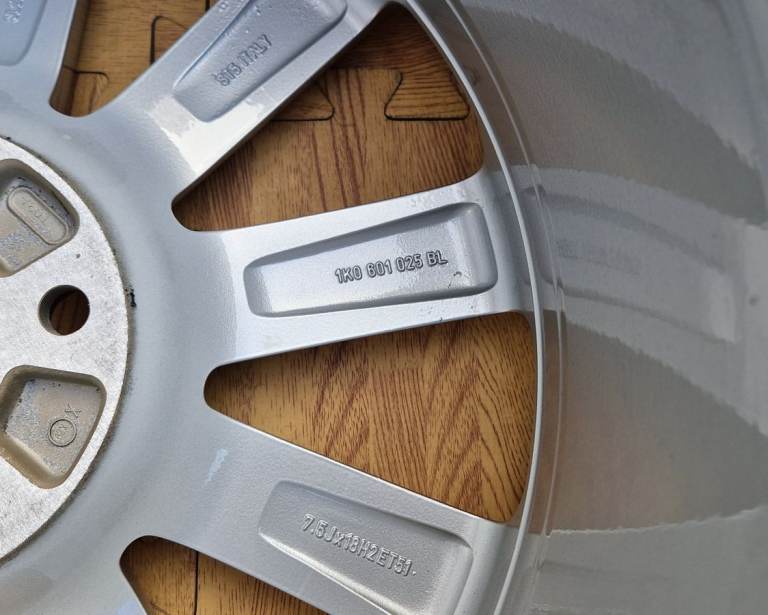 This is to buy or maybe part exchange this 1x 18'' genuine OEM (Original equipment manufacturer) VW Golf mk5 R32, Omanyt alloy wheel. It has been fully factory refurbished to original silver finish with powder coating (very strong durable finish baked in the oven), the outer rim diamond cut and lacquered.