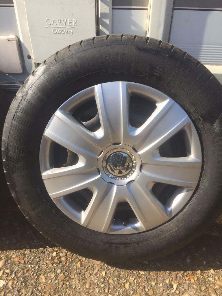 Posting for 11+ yearsVW Polo mk5 genuine wheels and hubcaps. 1 good tyre 2 continentals just legal. No buckles