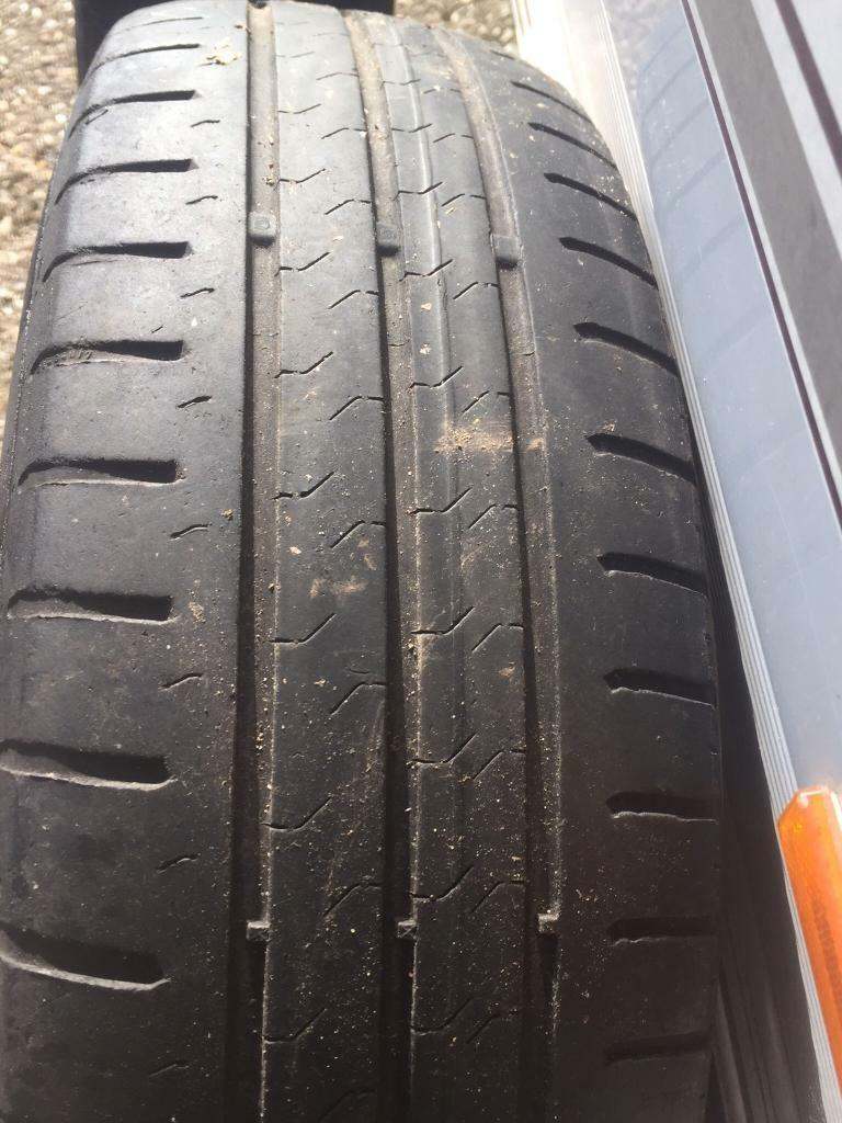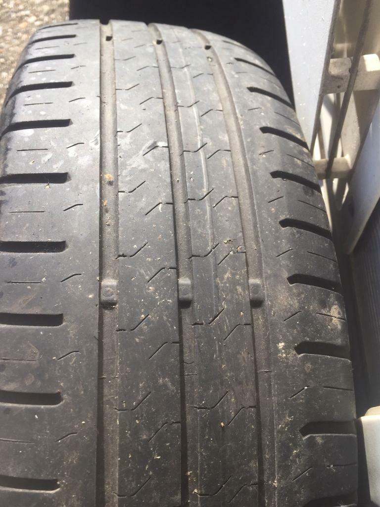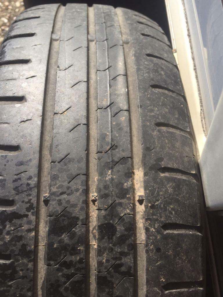 VW Polo mk5 genuine wheels and hubcaps. 1 good tyre 2 continentals just legal., 3 in Total.