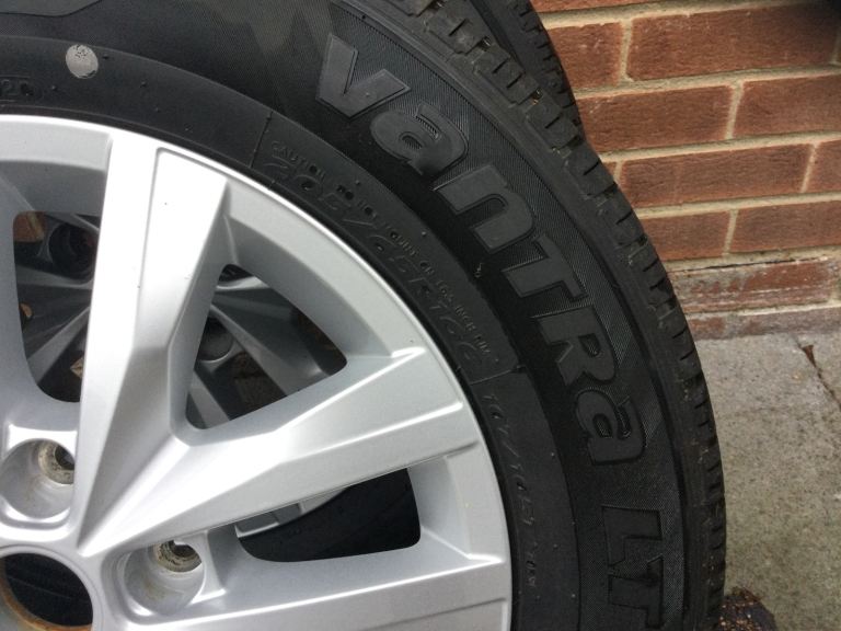 VW Transporter Clayton Alloys with Tyres. Pair of 2 x Wheels and Tyres only I have used the others to get my spare van through an MOT. I took these off my New Van and fitted bigger wheels. They only did around 100 miles getting the van home. Good value if you need a pair of tyres.