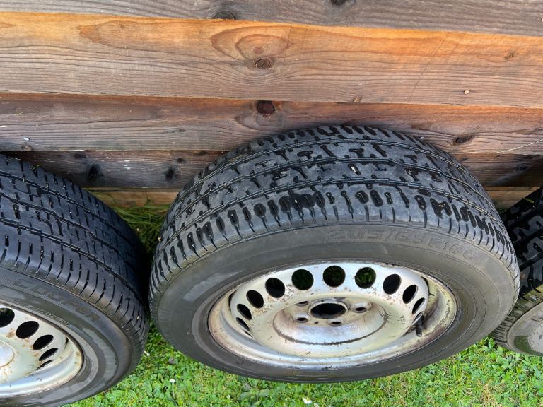 All tyres have good tread and all hold pressure, ready to be fitted to the van. See photos for tyre tread and condition.