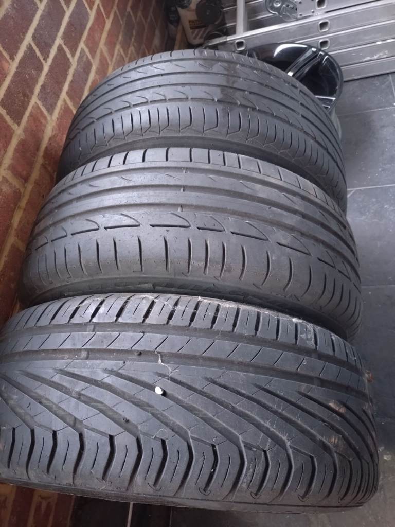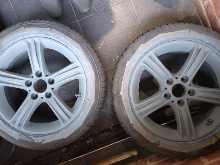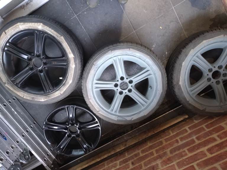 17" wheels/tyres/rims, 5 bolt, 3 almost new tyres, rims in good condition no cracks, used on BMW but can fit other cars