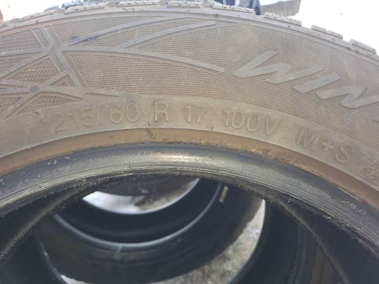 4of Vredestein Wintrac Pro, 215/60R17 100V, Good condition, 9 - 8 mm tread. Tyres only used 16 weeks last winter for local commute. Great traction on snow & ice.
