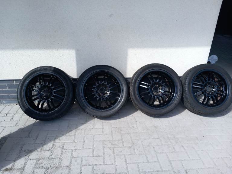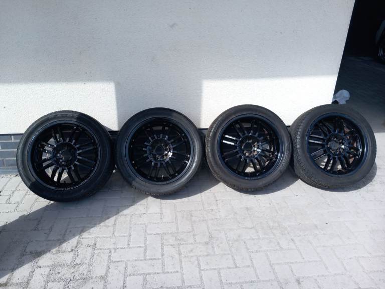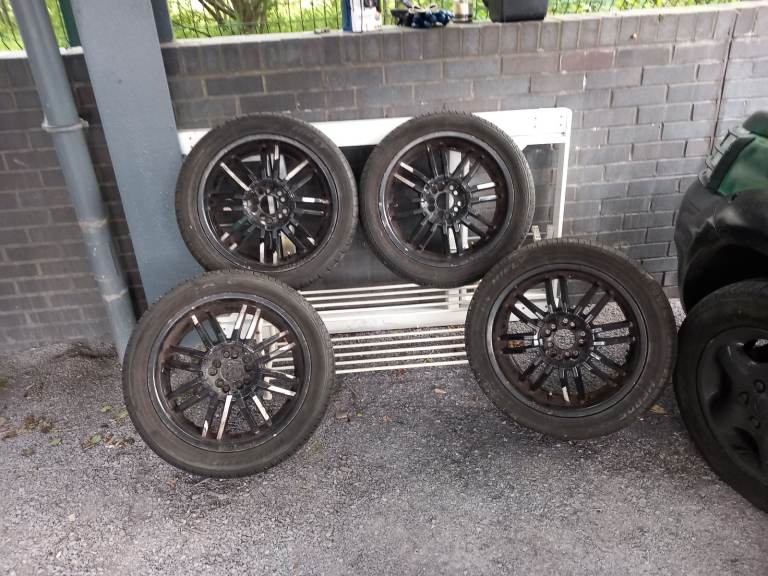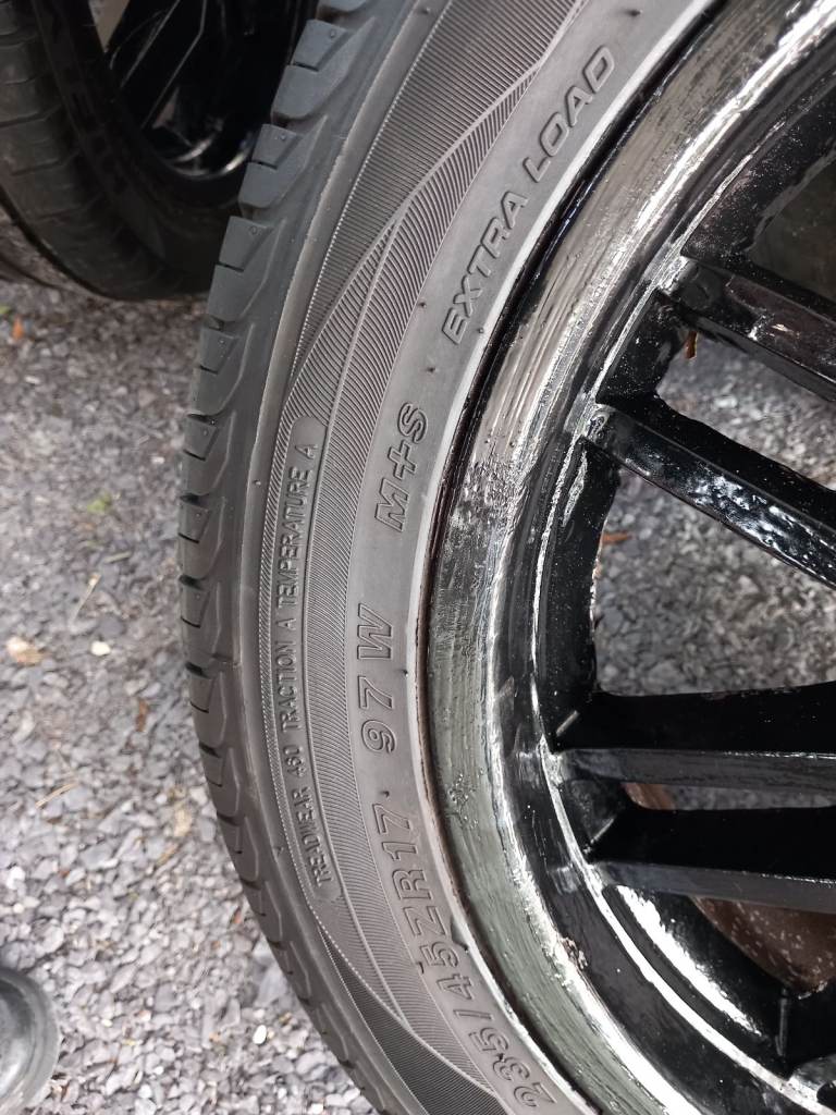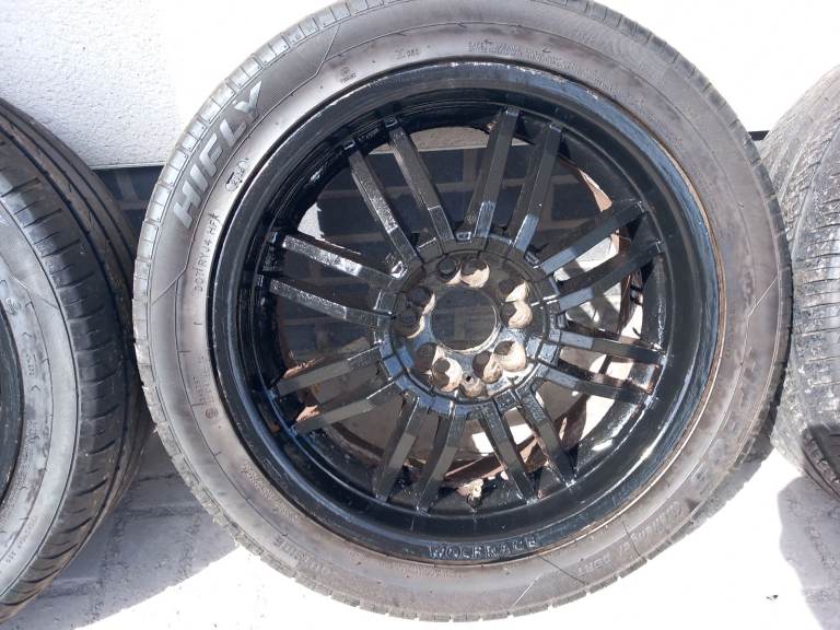 4 Wolfrace Wheels.17 inch.Been painted with Hammerite Black paint.Tyres have good tread.See photos for size.
