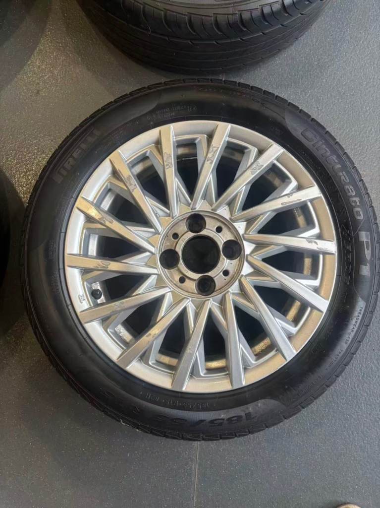 X4 Fiat 500 15inch wheels. Nearly Brand New tread on all wheels. Wheels are in excellent condition and alloys have no damage on them whatsoever!