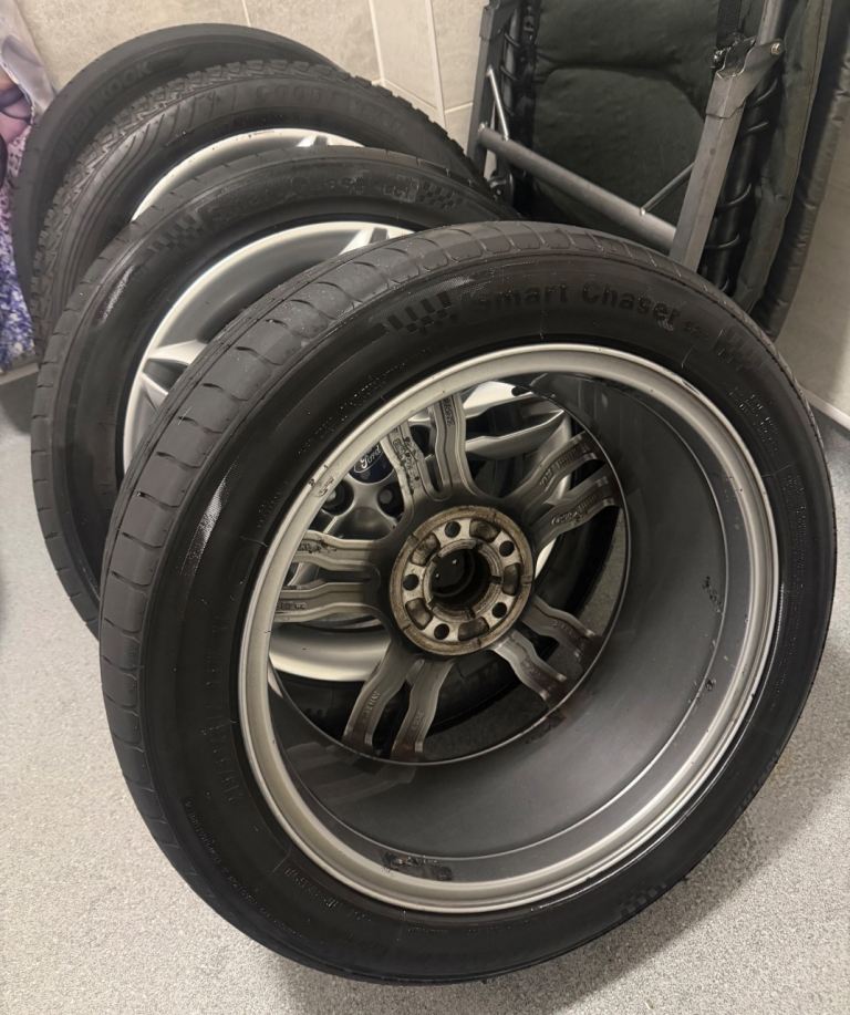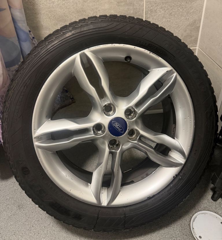 Full set of ford 17” alloy wheels removed from a 2016 grand c max titanium x the stud pattern is ( 5/108 ) they fit all ford models with 5 stud 3 of the tyres are fully legal good to use but one does need replacing great condition no buckles or previous welds came up lovely with some elbow grease still plenty of life left in them Looking for £180 O.V.N.O collection radyr Cardiff thanks for viewing 👍