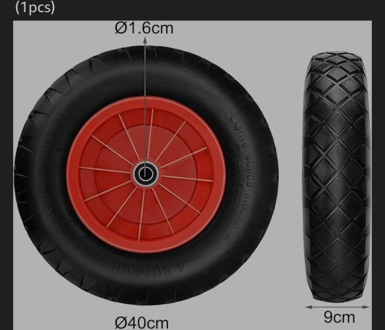 16" Wheelbarrow Wheel 4.80/4.00-8 Pneumatic Trolley Wheel Load 100Kg Puncture Proof Solid Tyre with 16mm Bore Heavy Duty Replacement Tire for Garden Trolley Trailer Wheelbarrows Truck (1pcs) the r.r.p is 18.99 we are selling it for 9.00 collection only it is st aidens Church summer Bank Road Tunstall st6 5ey we are there mon to sat 9am to 3pm with thanks.